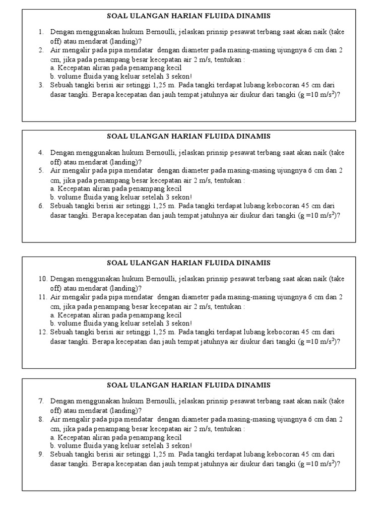 Contoh Soal Statistika Fluida. Cakupan : tekanan hidrostatis, tekanan total, penggunaan hukum Pascal, bejana berhubungan, viskositas, kecepatan terminal dan hukum Archimedes. Rumusrumus.com - Kali ini akan membahas tentang pengertian, makalah, materi, dan contoh soal fluida statis serta akan dibahas juga materi yang berhubungan dengan fluida statis yakni massa jenis.